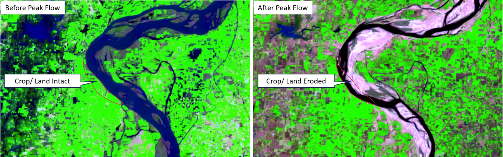 River course changes can wipe out villages, forcing families to migrate repeatedly. Such people are sometimes called “river erosion displaced”. Along major rivers in Pakistan, communities have been displaced multiple times due to erosion / deposition processes in dynamic river flood plain.